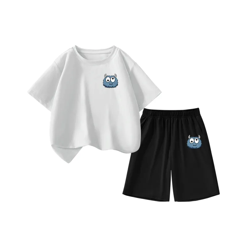 [Влагоотводящая одежда с коротким рукавом + быстросохнущие шорты] Белый + Черный
