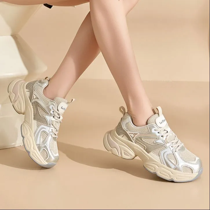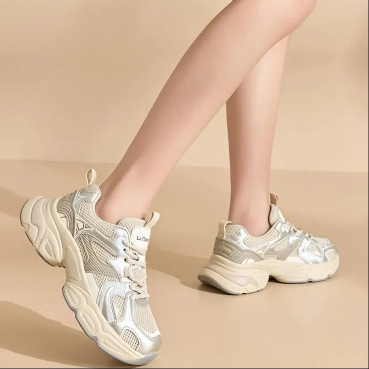 La Chapelle Высота Увеличивающие Дышащие Низкие Топ Кроссовки с Толстой Подошвой Женские