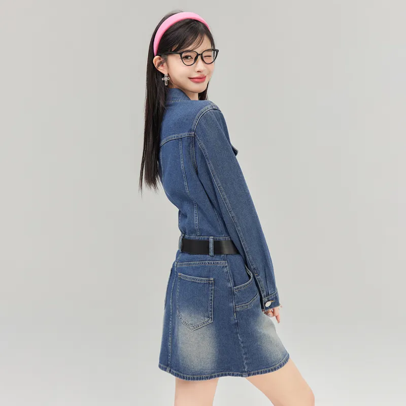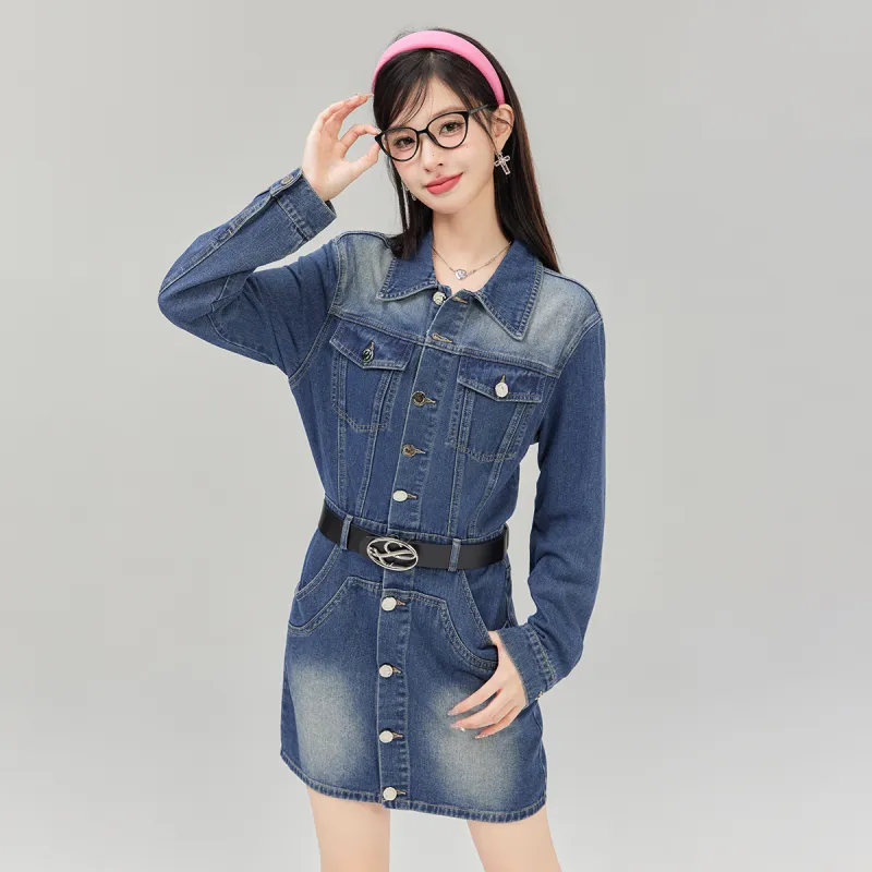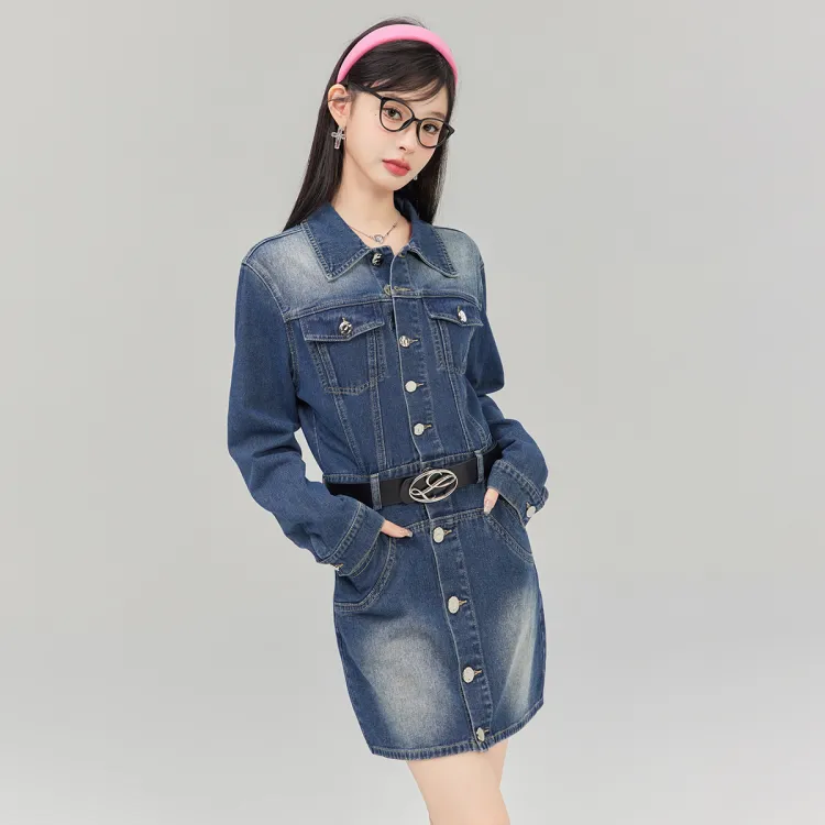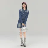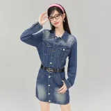 LA CRAWFISH Винтажный деним синий Женские Длинные Платья с рукавами