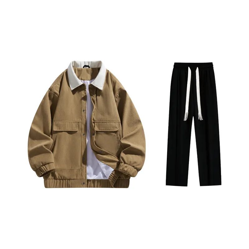 Комплект:Комплект одежды (Хаки куртка + Черные повседневные штаны)