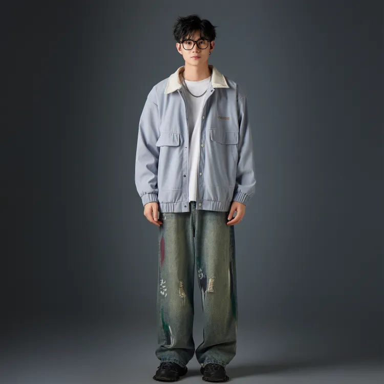 Комплект одежды (Синяя куртка + Черные повседневные штаны)