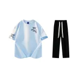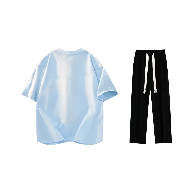 Комплект одежды (Светло-синяя футболка + Черные повседневные штаны)