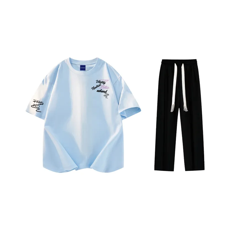 Комплект:Комплект одежды (Светло-синяя футболка + Черные повседневные штаны)