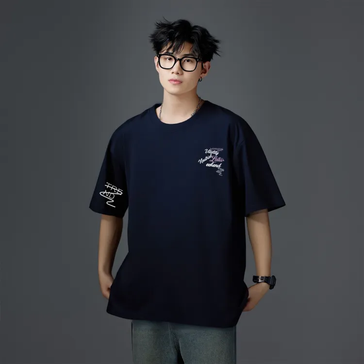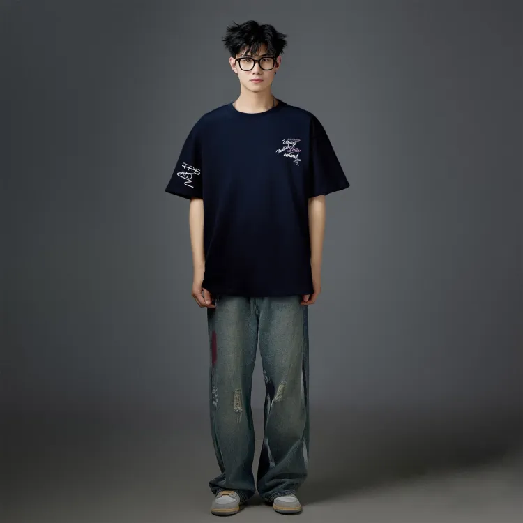 Комплект одежды (Темно-синяя футболка + черные повседневные штаны)