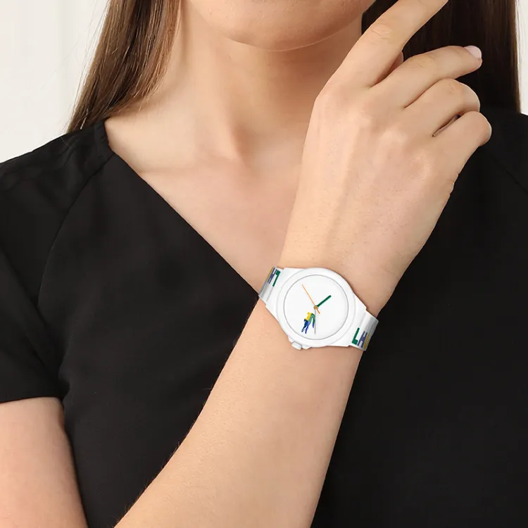 LACOSTE NEOCROC Collection Женские часы Кварцевый механизм Силиконовый ремешок 38 мм Белый циферблат 2001217