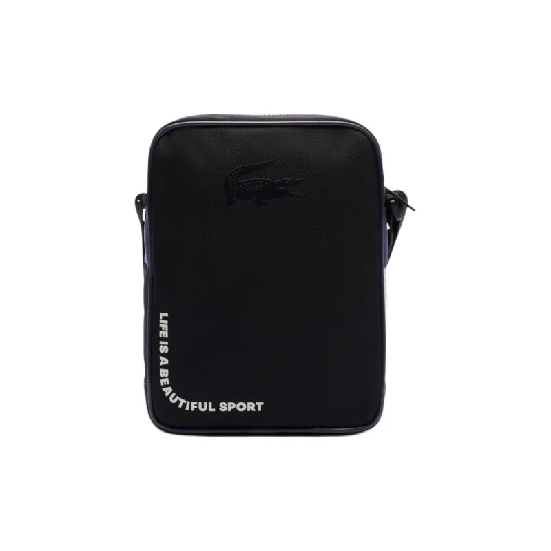 Сумка через плечо из полиамида стандартная мужская фиолетовая и черная совместная с LACOSTE