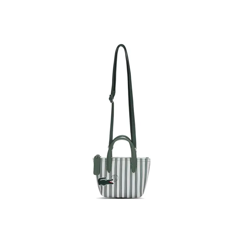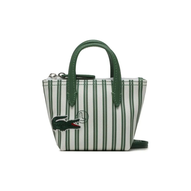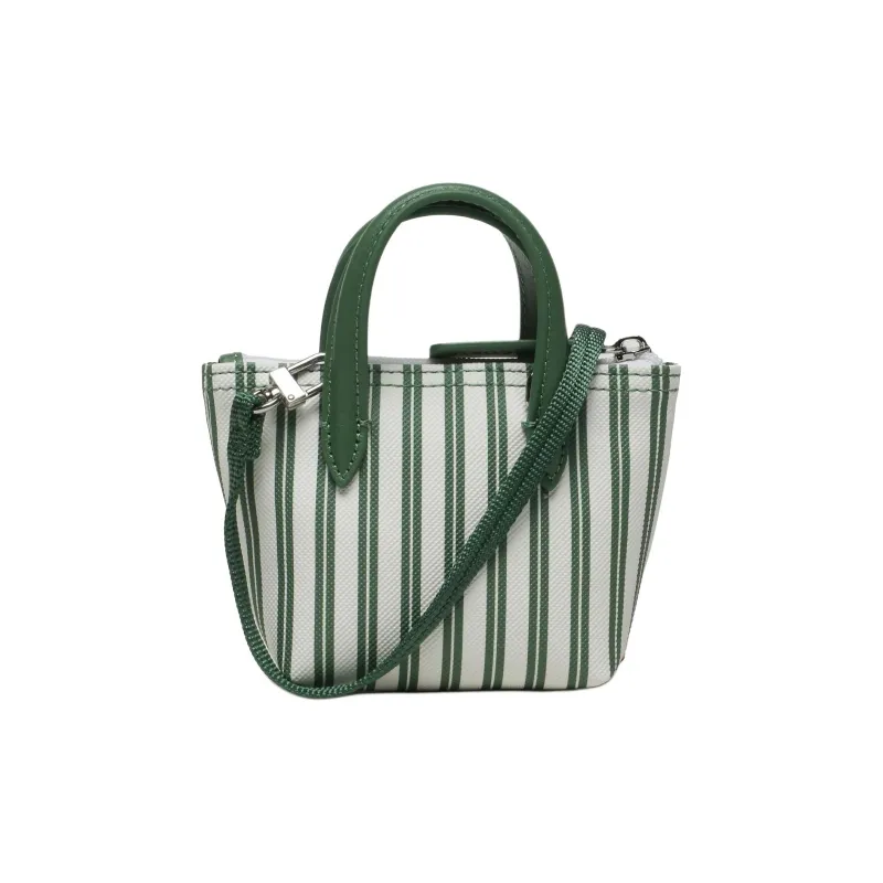 LACOSTE PVC Тоут Сумка Сумка для покупок Сумка через плечо Сумка Маленькая Женская Зеленая Полосатая Узор
