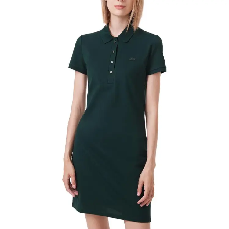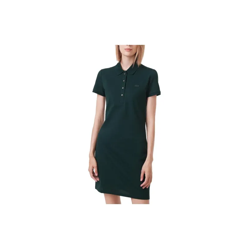 LACOSTE Темно-зеленое Женское Платье с Коротким Рукавом