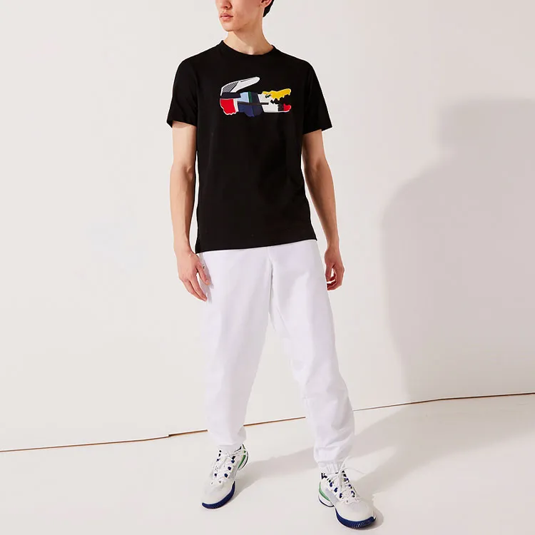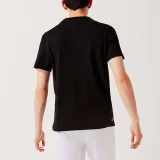 LACOSTE SS22 Круглый вырез Облегающий прямой крой Короткий рукав Т-рубашка Мужская Черная