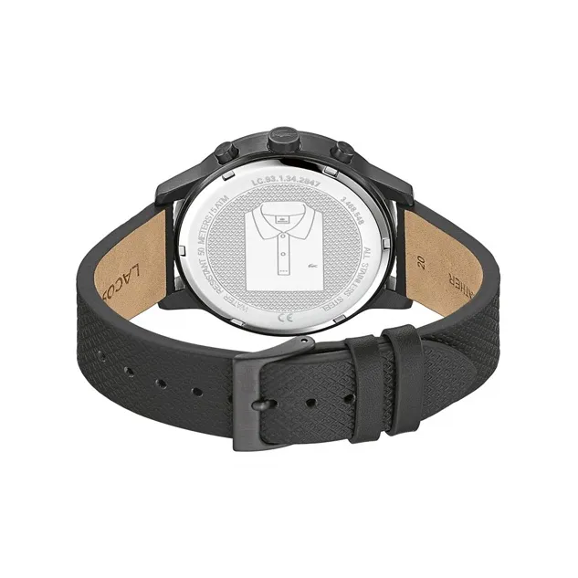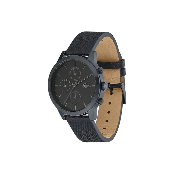 LACOSTE Мужские часы Кварцевый механизм Кожаный ремешок 42 мм Черный циферблат