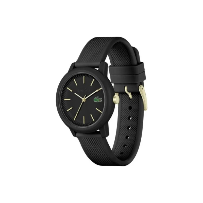 LACOSTE Женские часы Кварцевый механизм Смольный ремешок 36 мм Черный циферблат