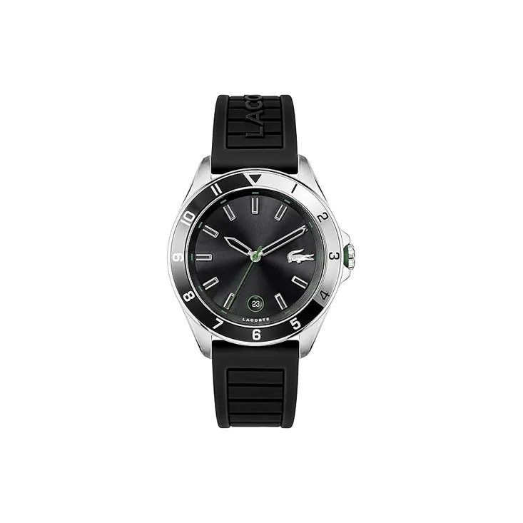Lacoste Мужские часы Кварцевый механизм Силиконовый ремешок 43 мм Черный циферблат