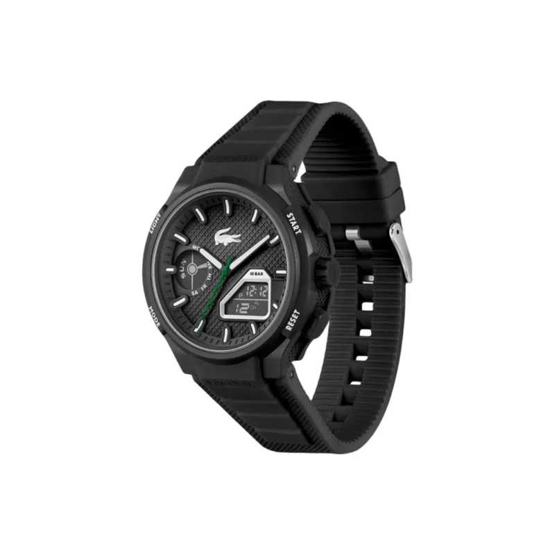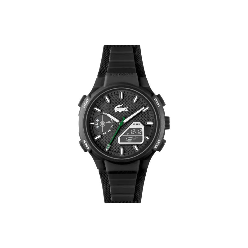 LACOSTE Мужские часы Кварцевый механизм Силиконовый ремешок 45 мм Черный циферблат