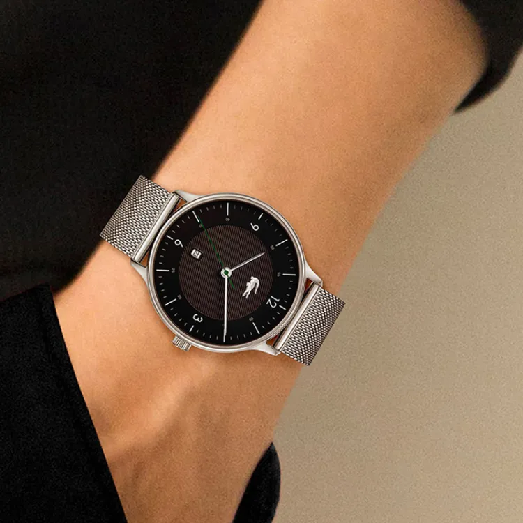 LACOSTE Мужские часы Кварцевый механизм Ремешок из нержавеющей стали 42 мм Черный циферблат