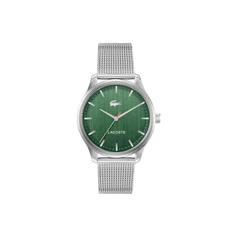 LACOSTE Мужские часы Кварцевый механизм Ремешок из нержавеющей стали 42 мм Зеленый циферблат