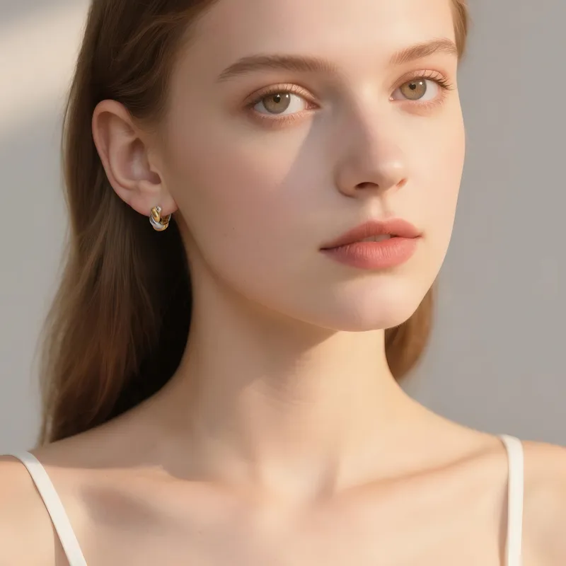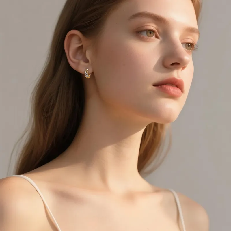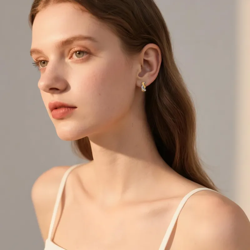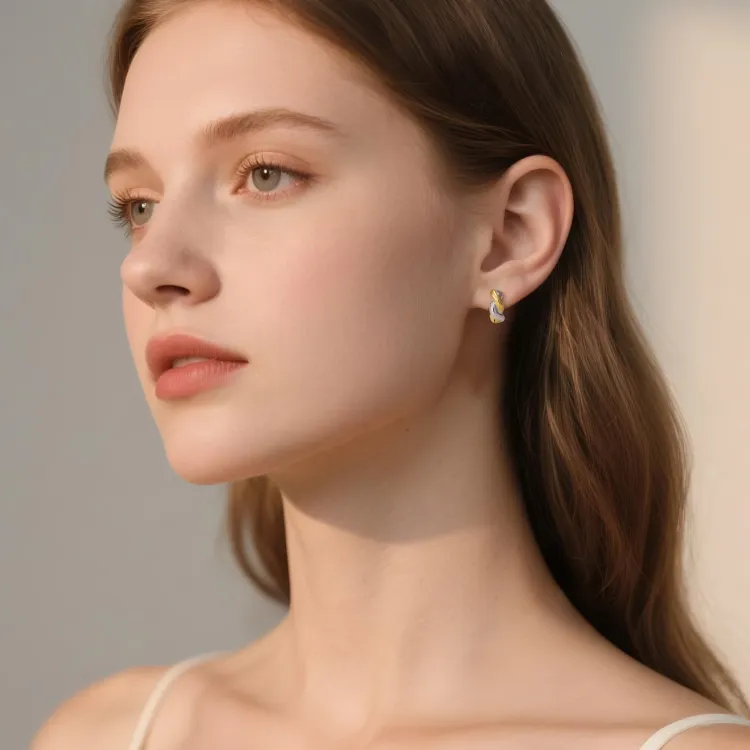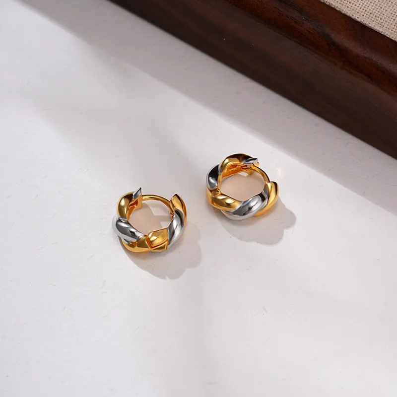Стиль:Золото и серебро, двухцветные, серьги в виде скрученного жареного теста