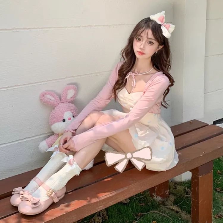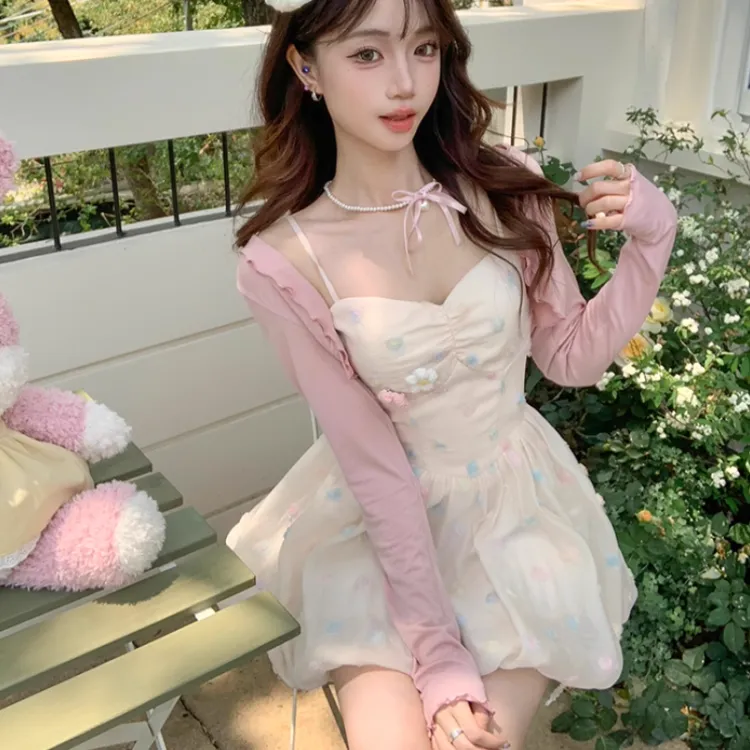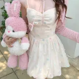 Цвет:Платье в горошек с розовой шалью