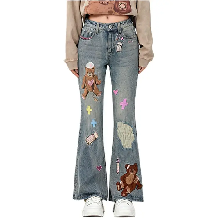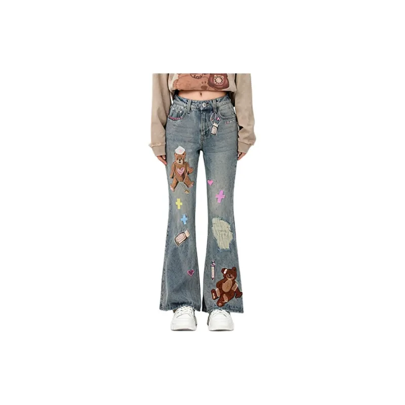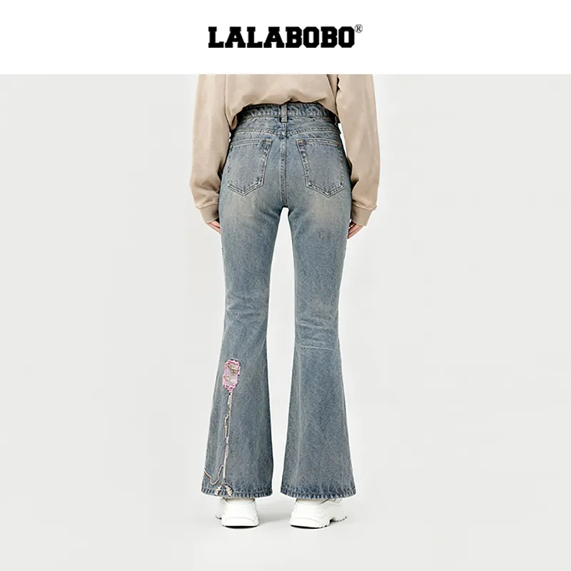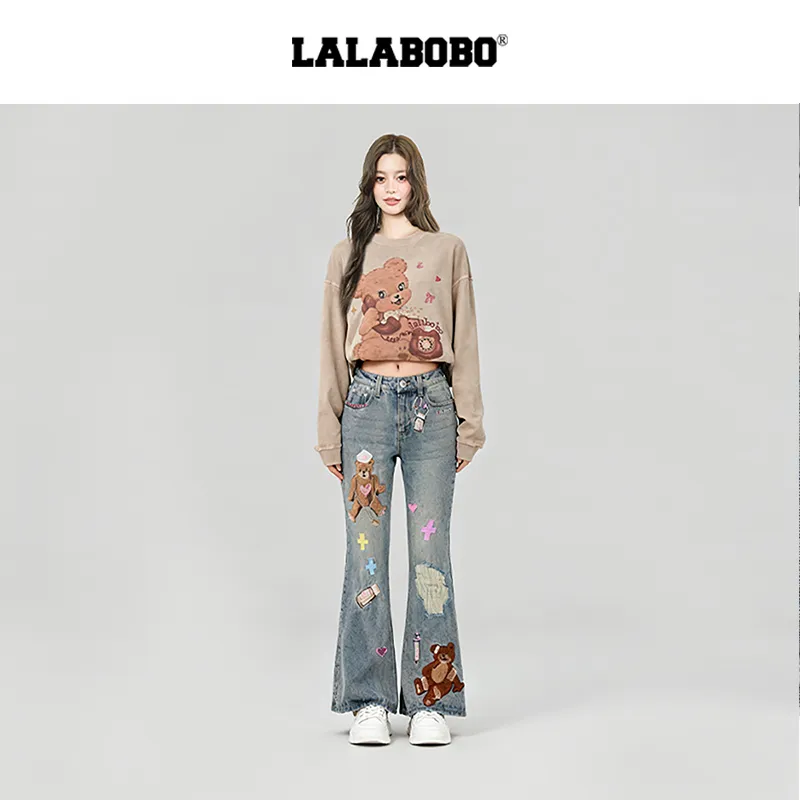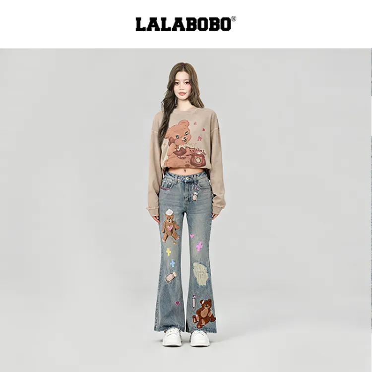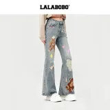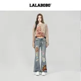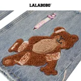 LALABOBO Medium Blue White Unisex Jeans ЛАЛАБОБО Средне-синий Белый Унисекс Джинсы