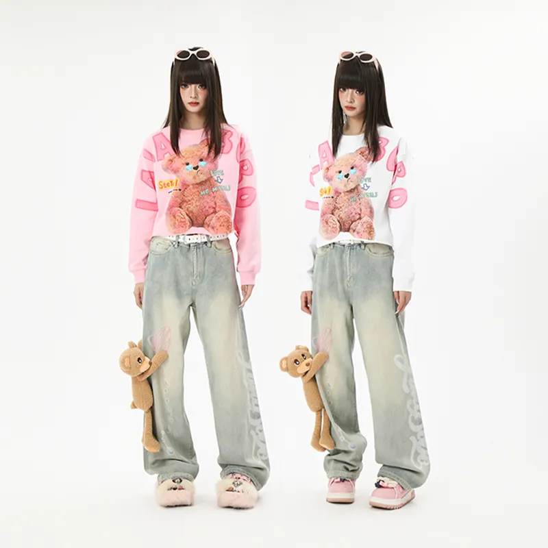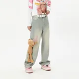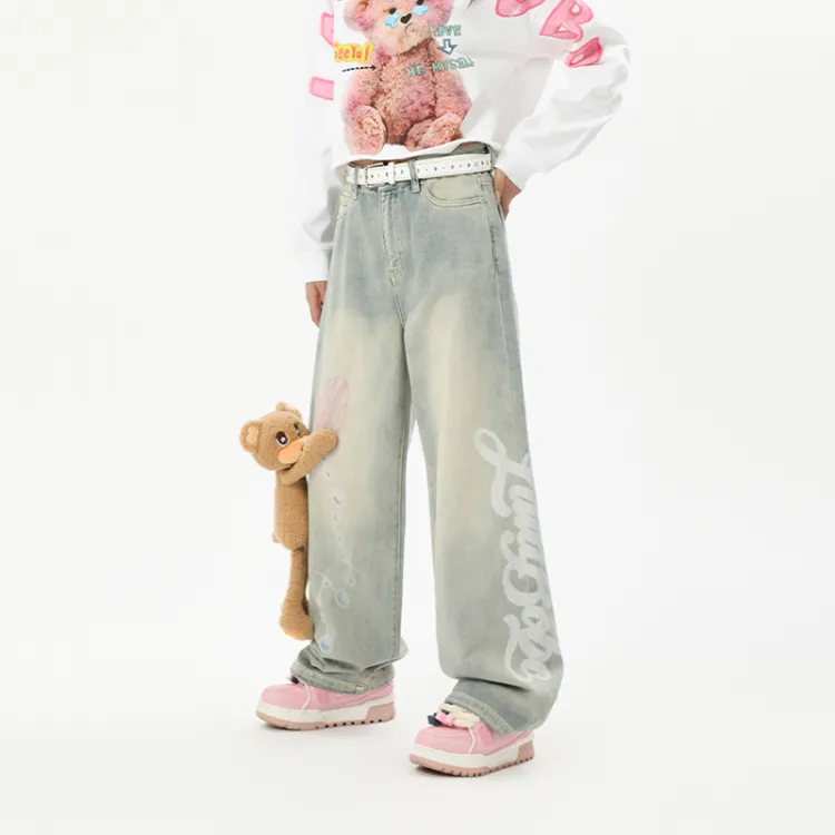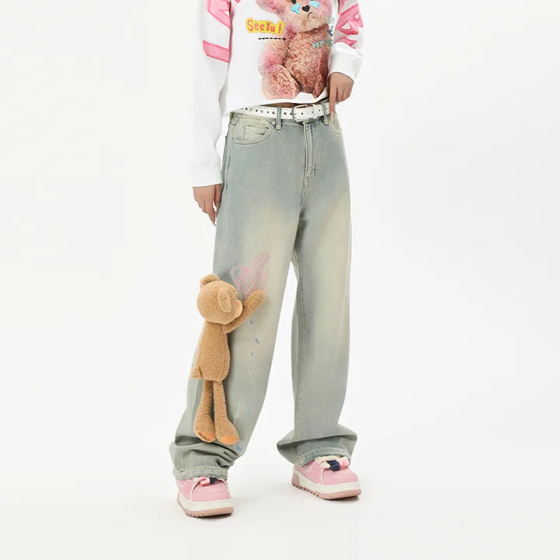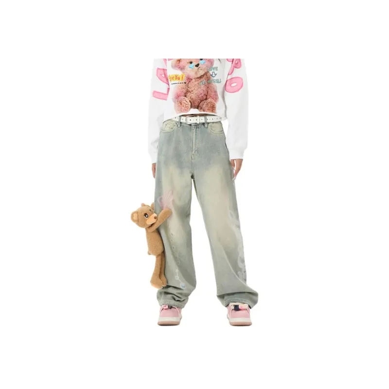 LALABOBO Джинсы Женские Средне-голубой Белый