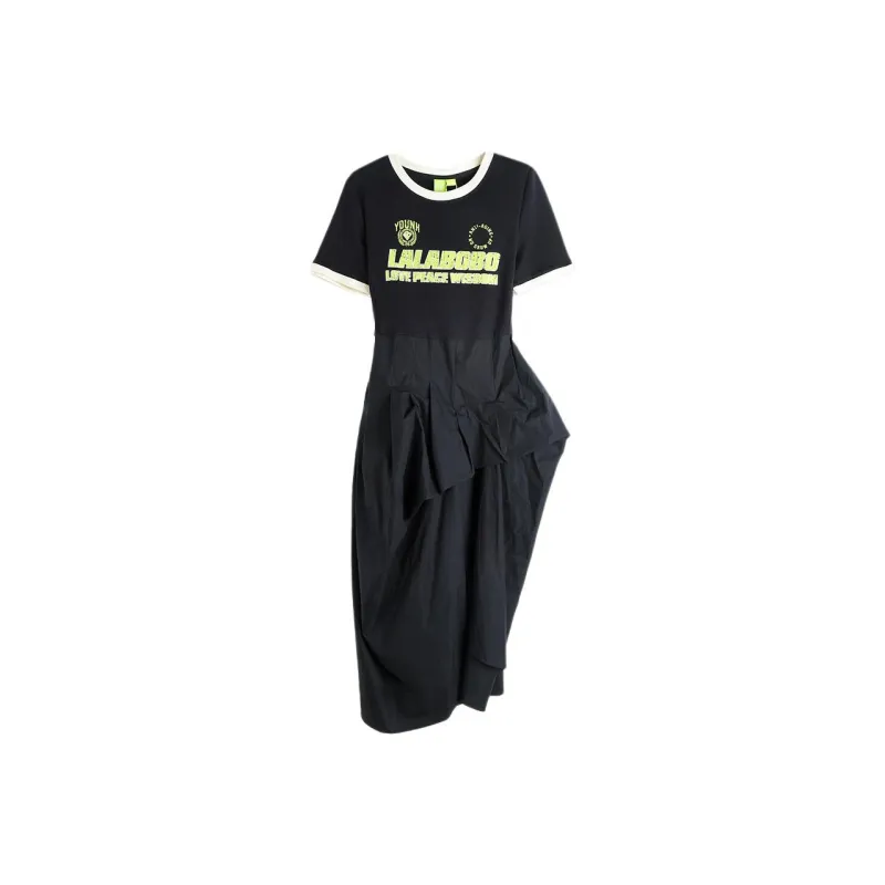 LALABOBO Короткое платье с короткими рукавами женское черное