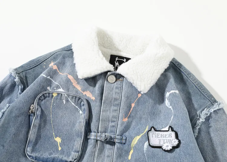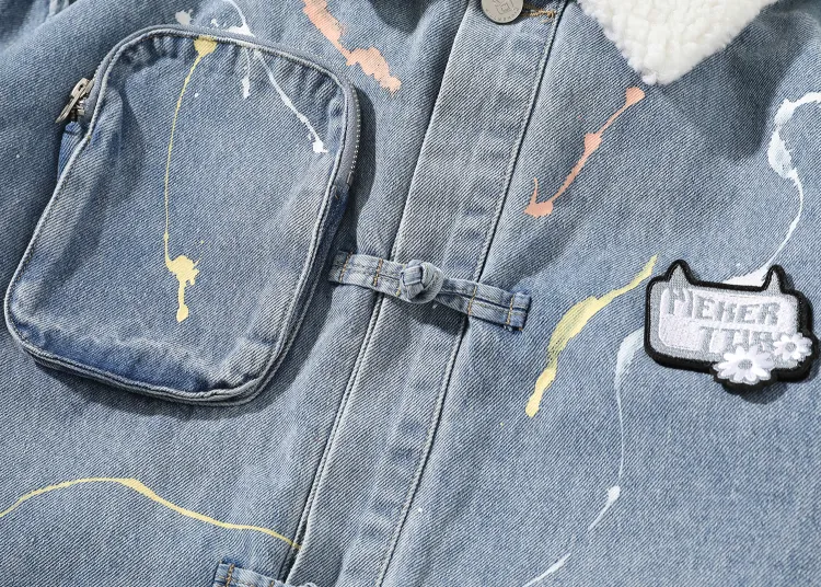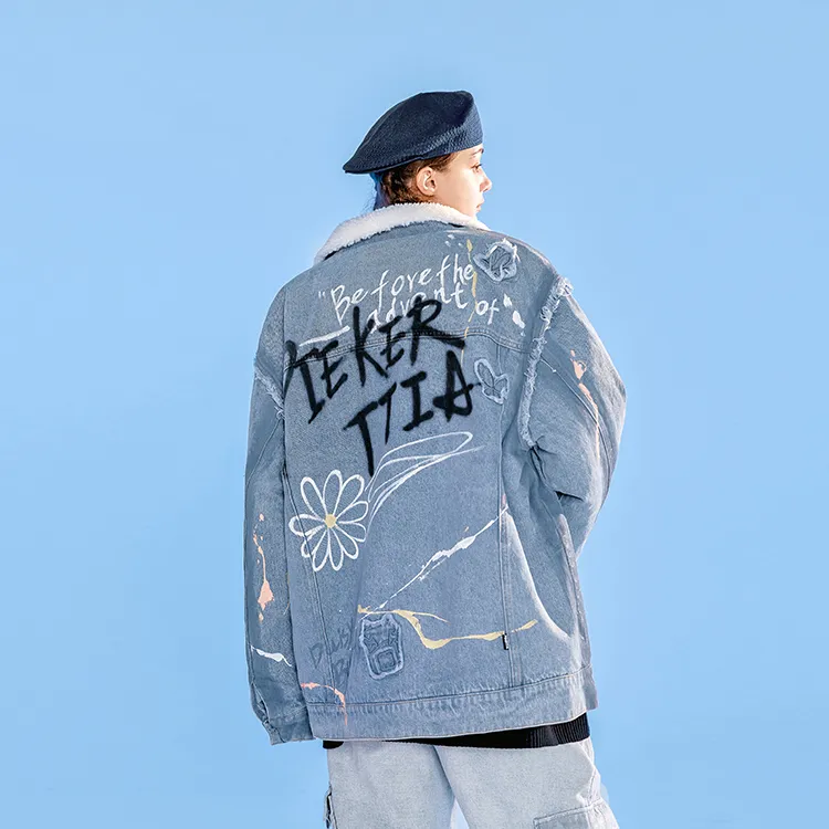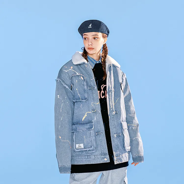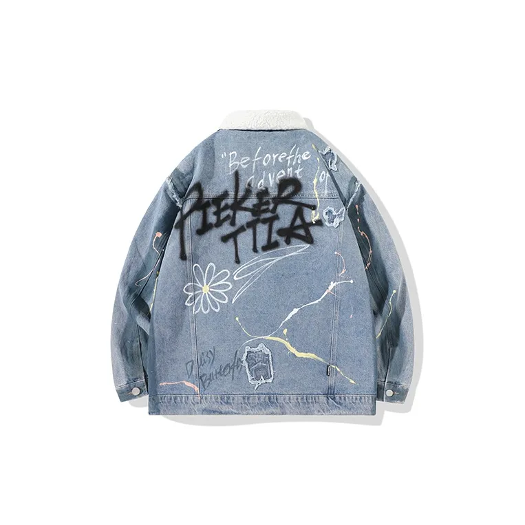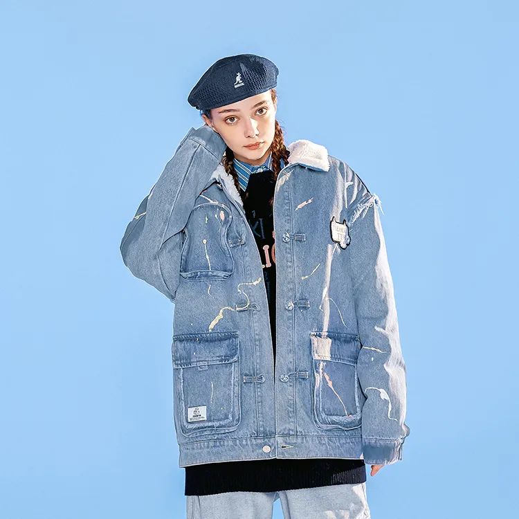 LAMLICKA Letter Lapel Loose Fit Thickened Cotton Down Jacket Unisex Blue LAMLICKA Письмо Отложной воротник Свободный крой Утолщенный хлопковый пуховик Унисекс Синий