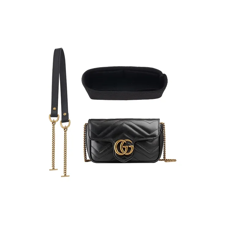 Чёрная сумка с вкладышем 1 шт + чёрный ремень + винтажная цепочка одно плечо 65 см