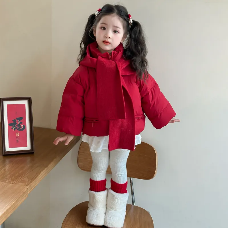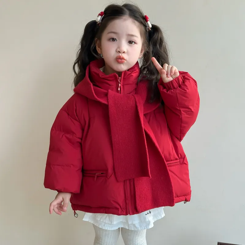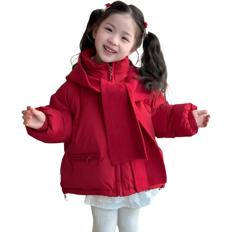 LANCAIHE Красный с шапкой Kids утеплённые куртки