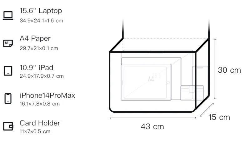Д43*Ш15*В30см