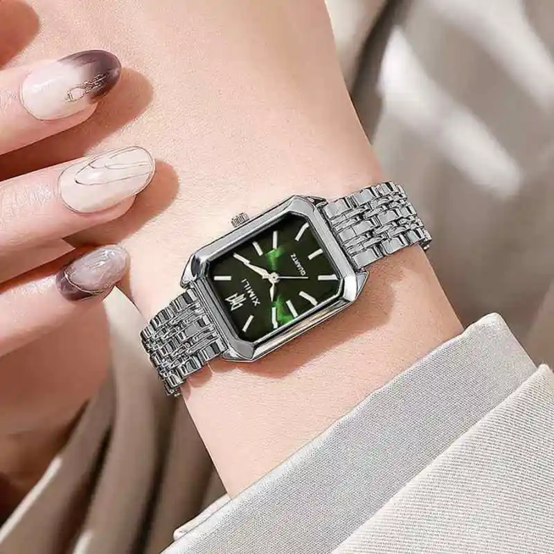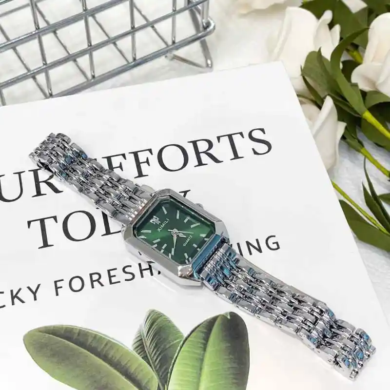 Циферблат Цвет:Нержавеющая сталь, маленький, зеленый, часы