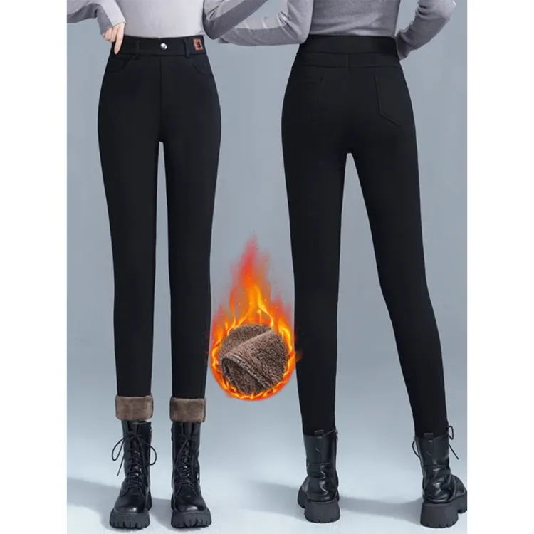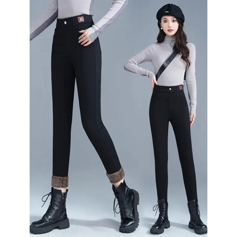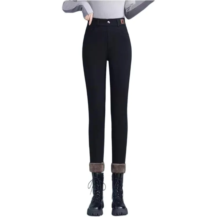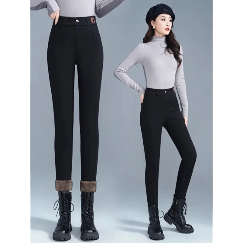Langqing Черный [С флисовой подкладкой и утолщенный] Бесплатная доставка Бренд Наклеенный Женские Повседневные брюки