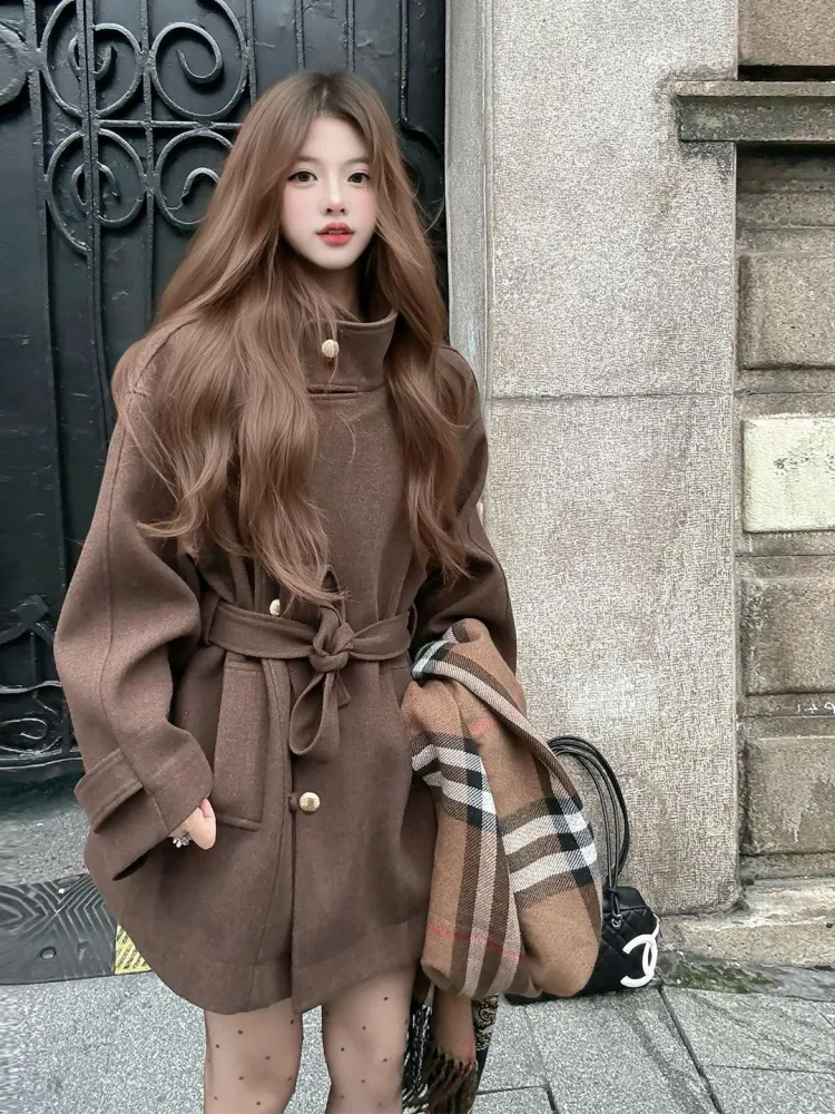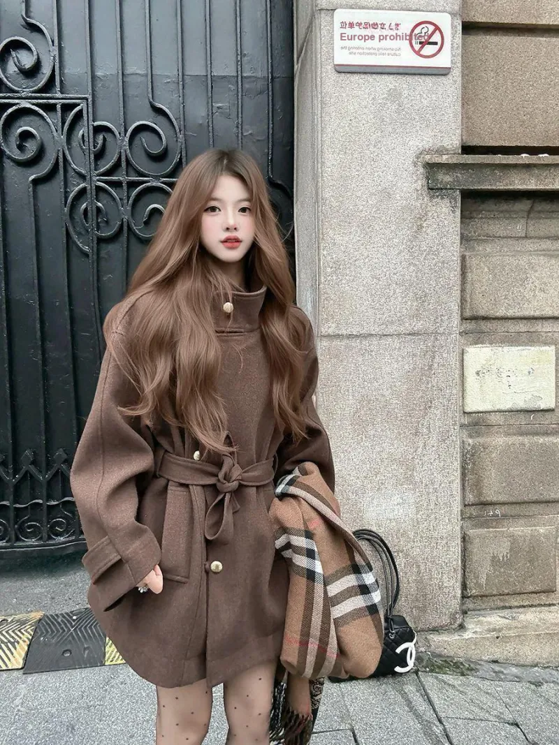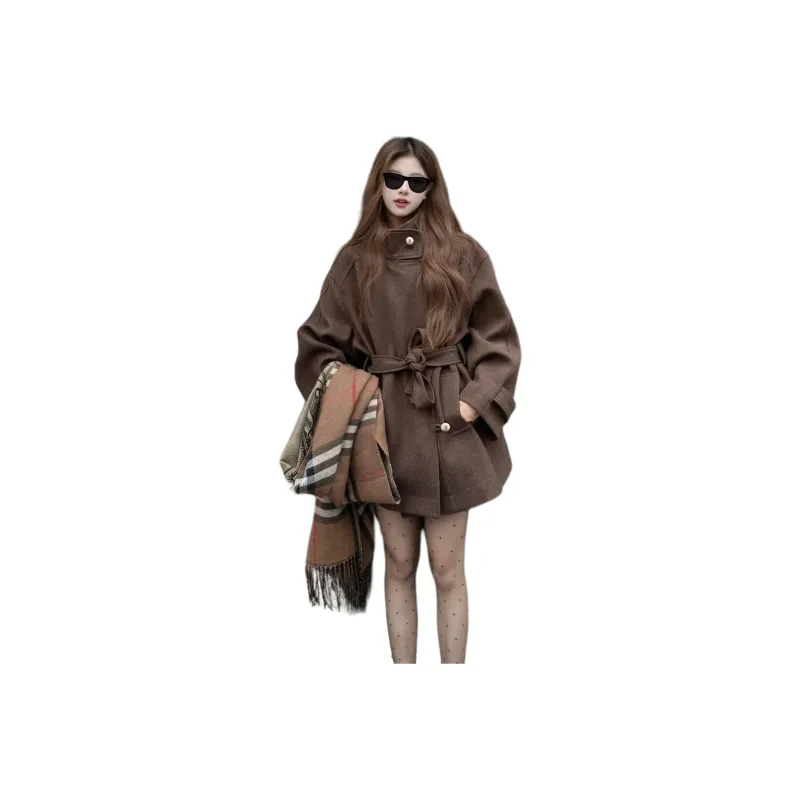Langqing Кофе Бесплатная доставка On Бренд Наклеенный Женские Пальто