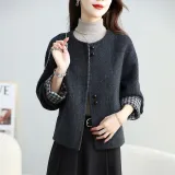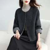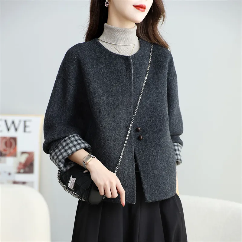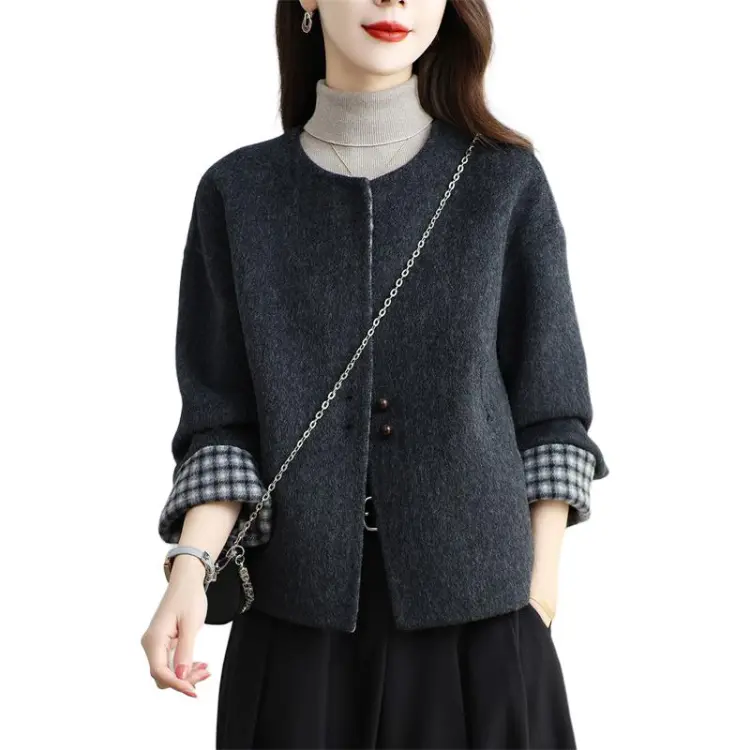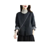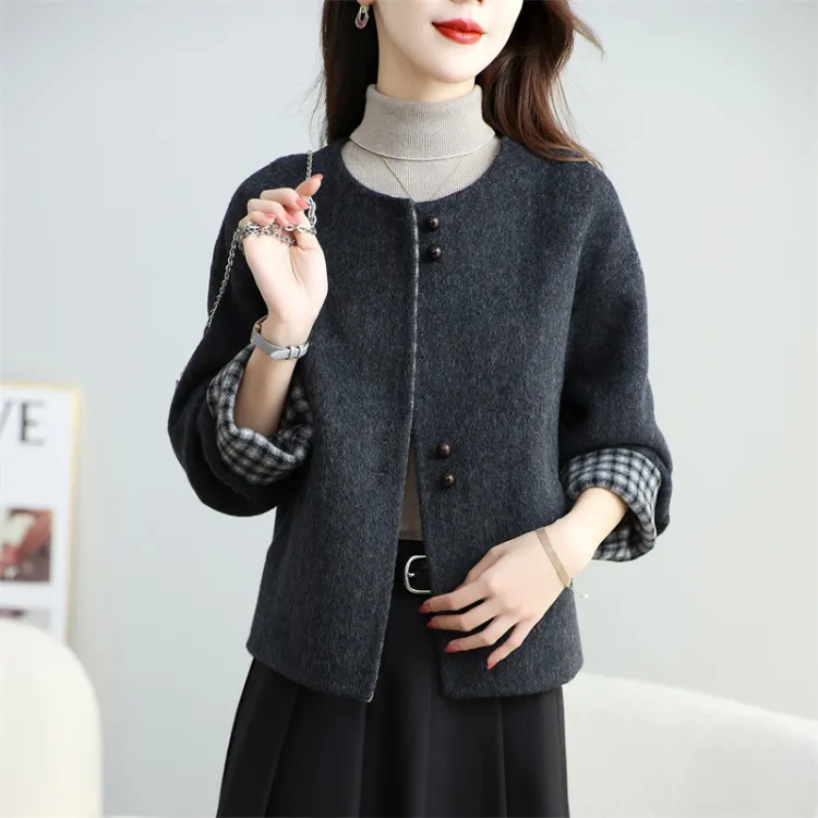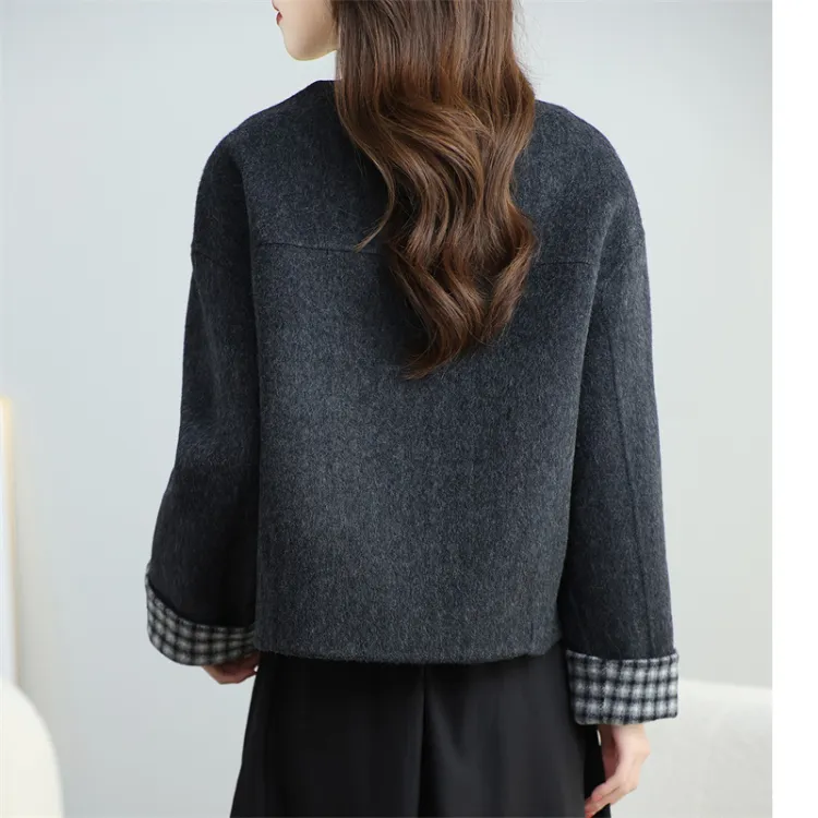 Langqing Серо-белая клетка с подарками Langqing Наклеенный Женское пальто