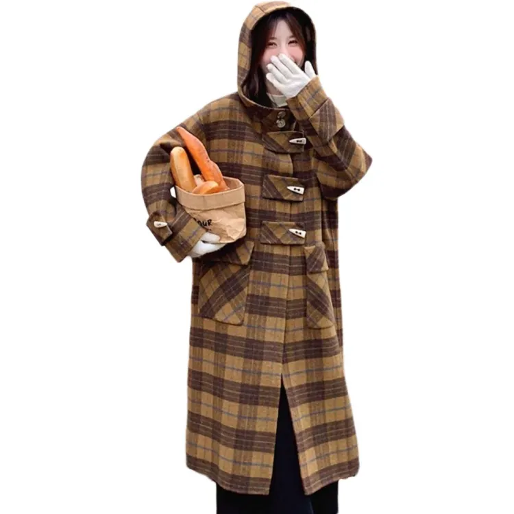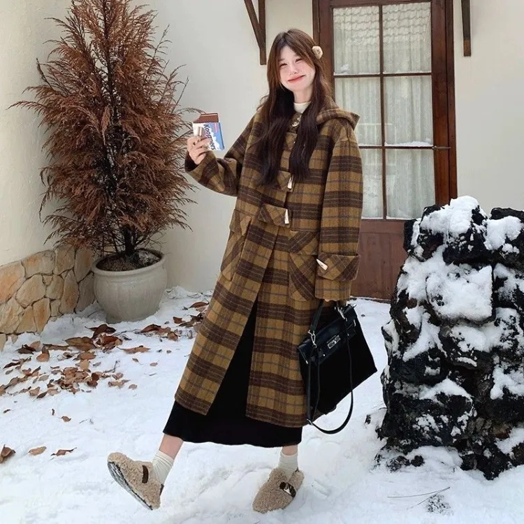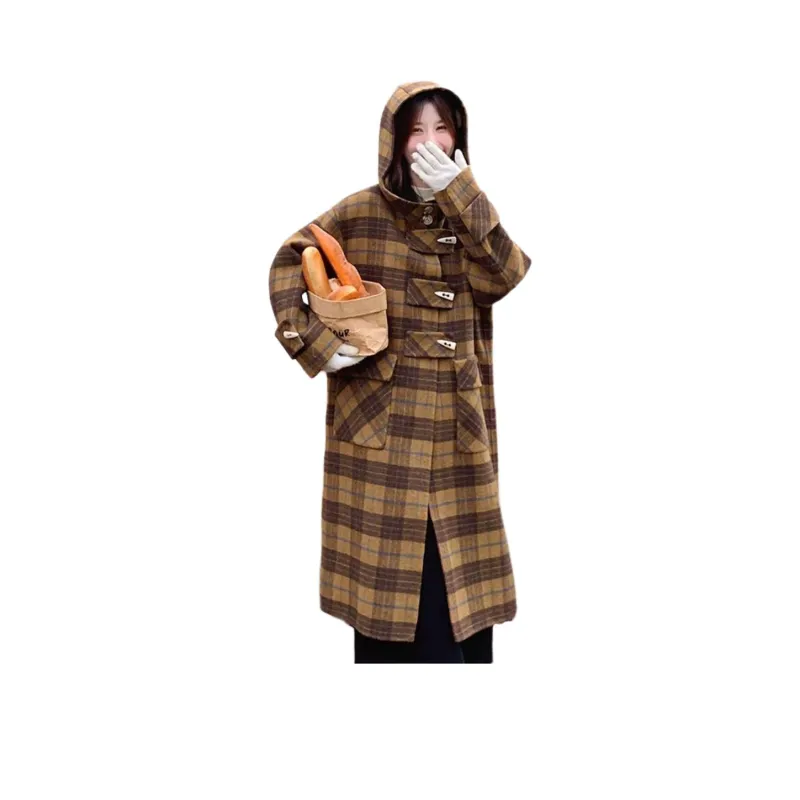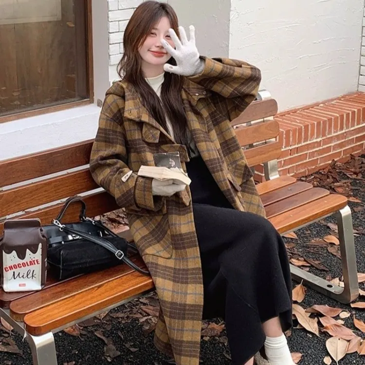 LANGQING Клетчатое Женское Пальто
