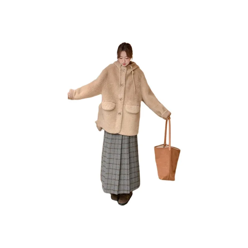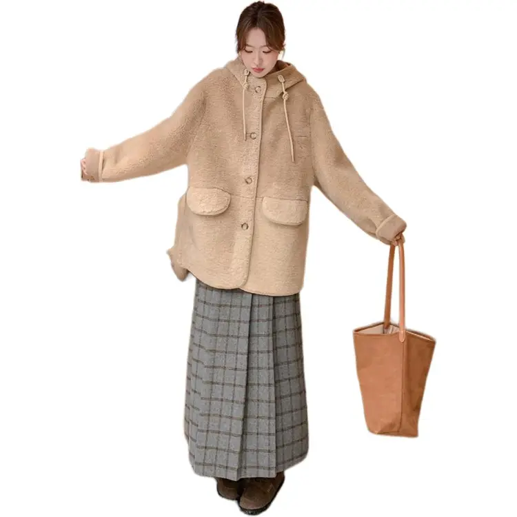 Langqing Хаки бесплатная доставка бренд наклеенный женские короткие пальто