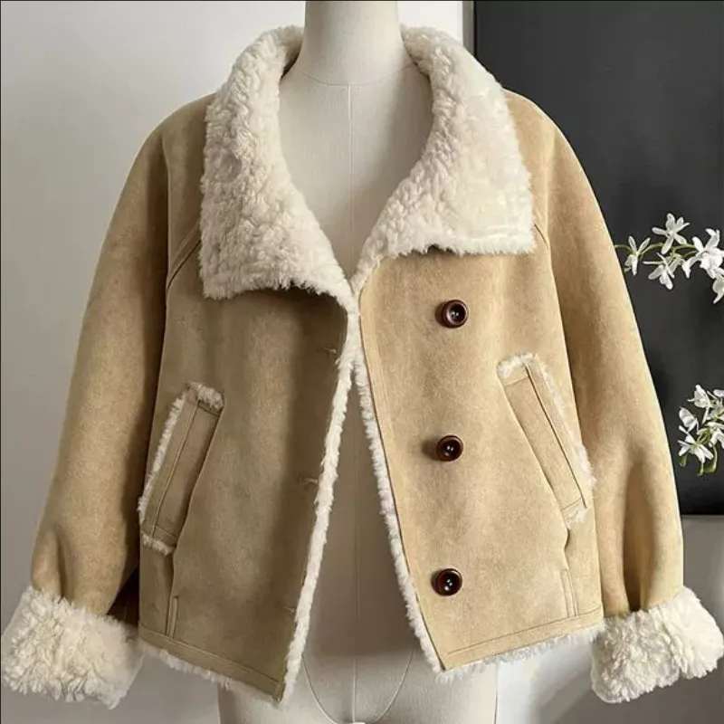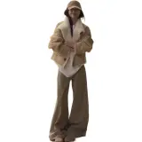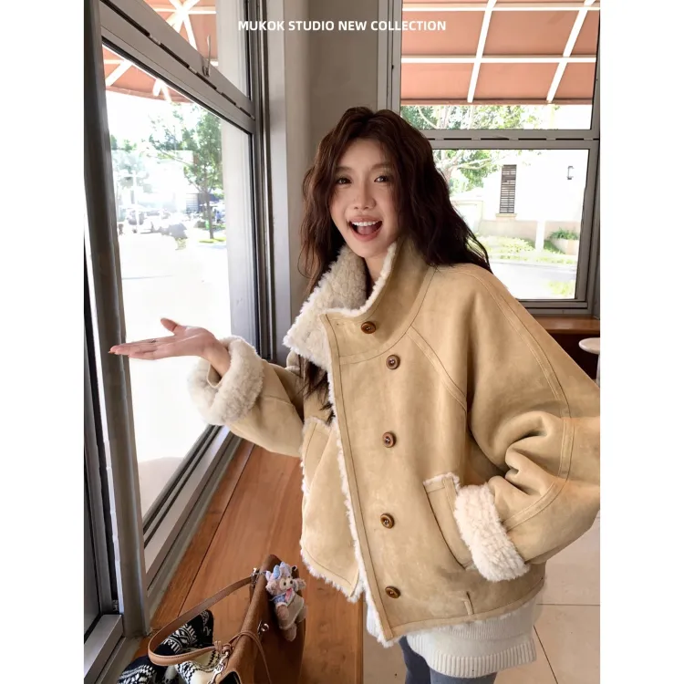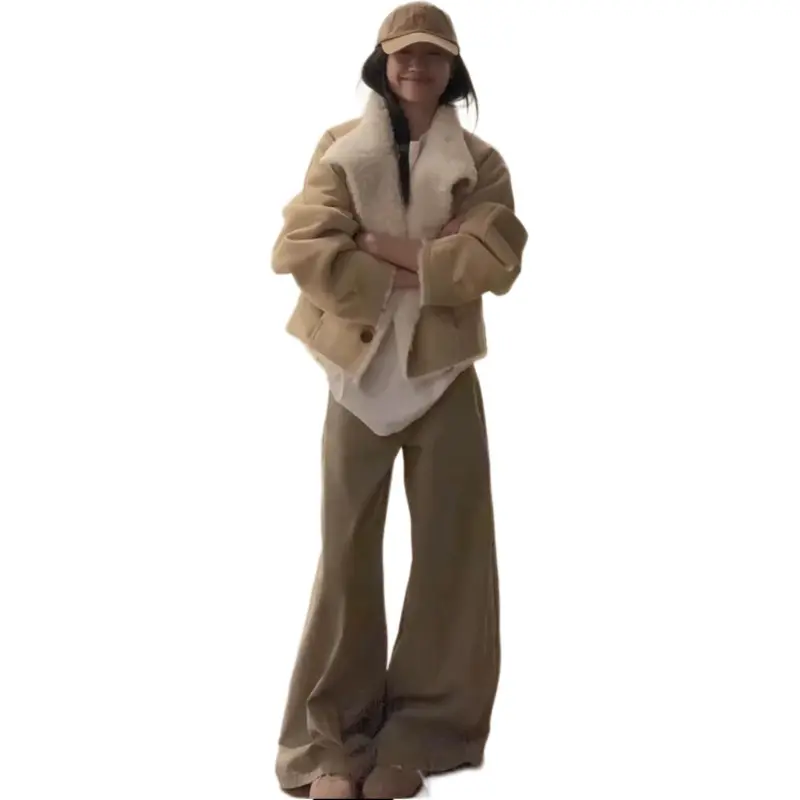 Langqing Светлый хаки с бесплатным Wangqing брендом наклеенный женские короткие пальто