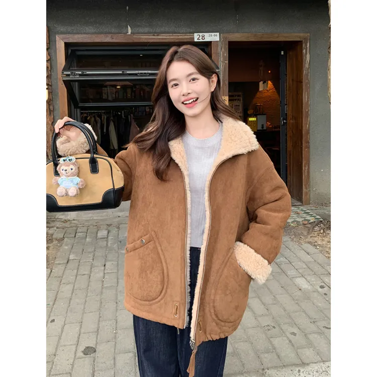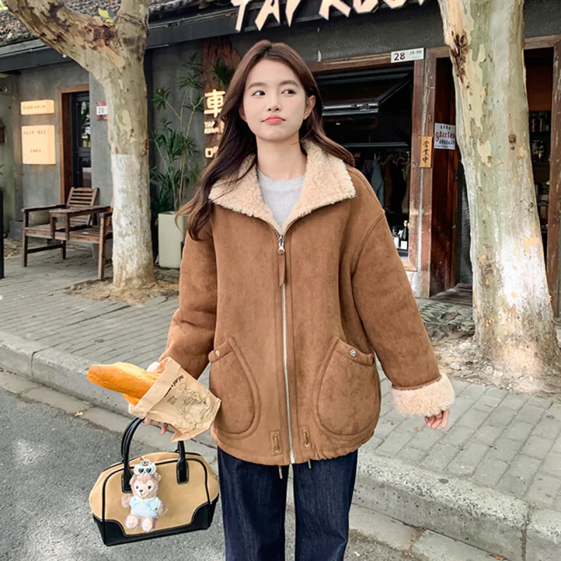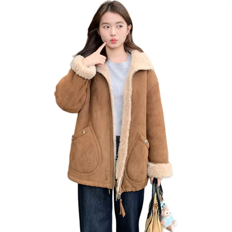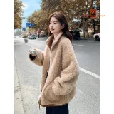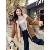 Langqing Средний кофейный женский короткий пальто