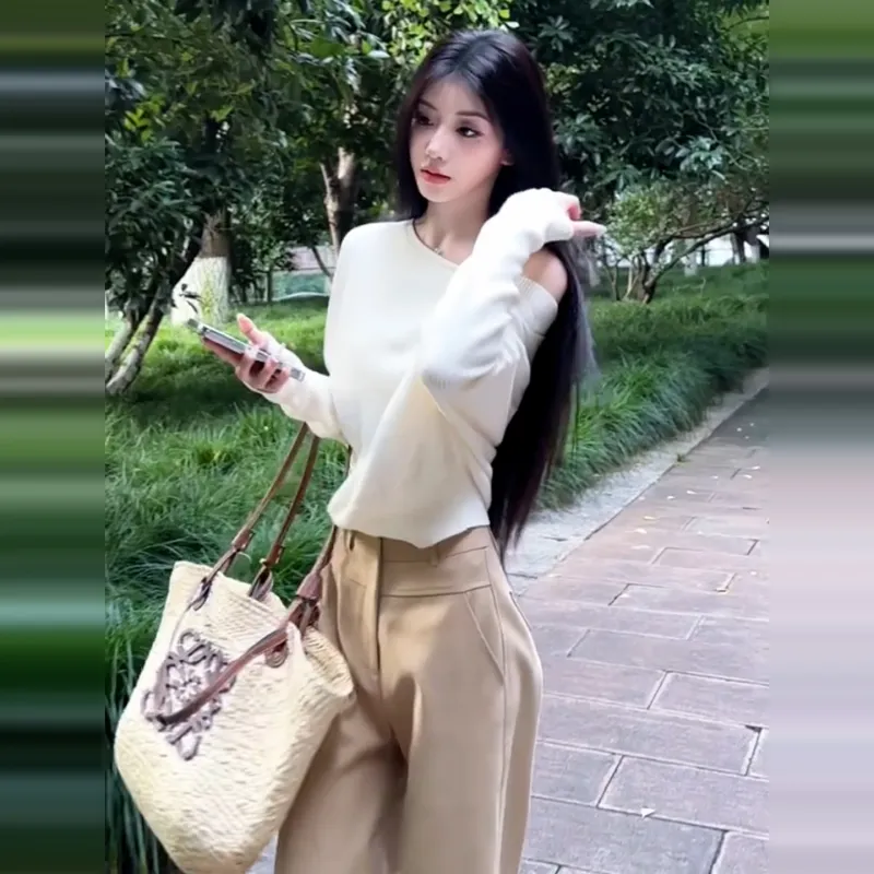 LANGQING [Экрю] Бесплатная доставка с бренд наклейкой женский трикотаж