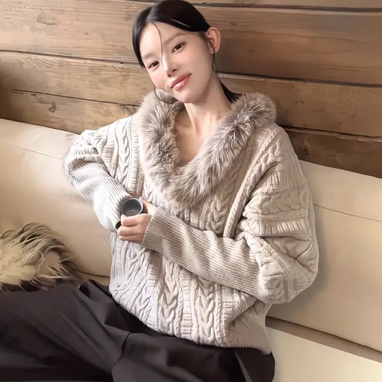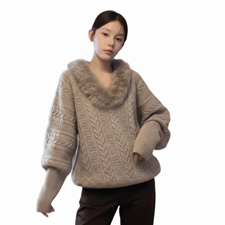 Langqing Flower Camel Color с Brand Sticker Women's Knitted