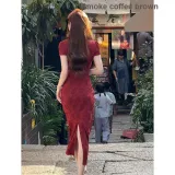 Langqing Изображение Цвет С Langqing Наклеенный Женский Длинный Рукав Платье
