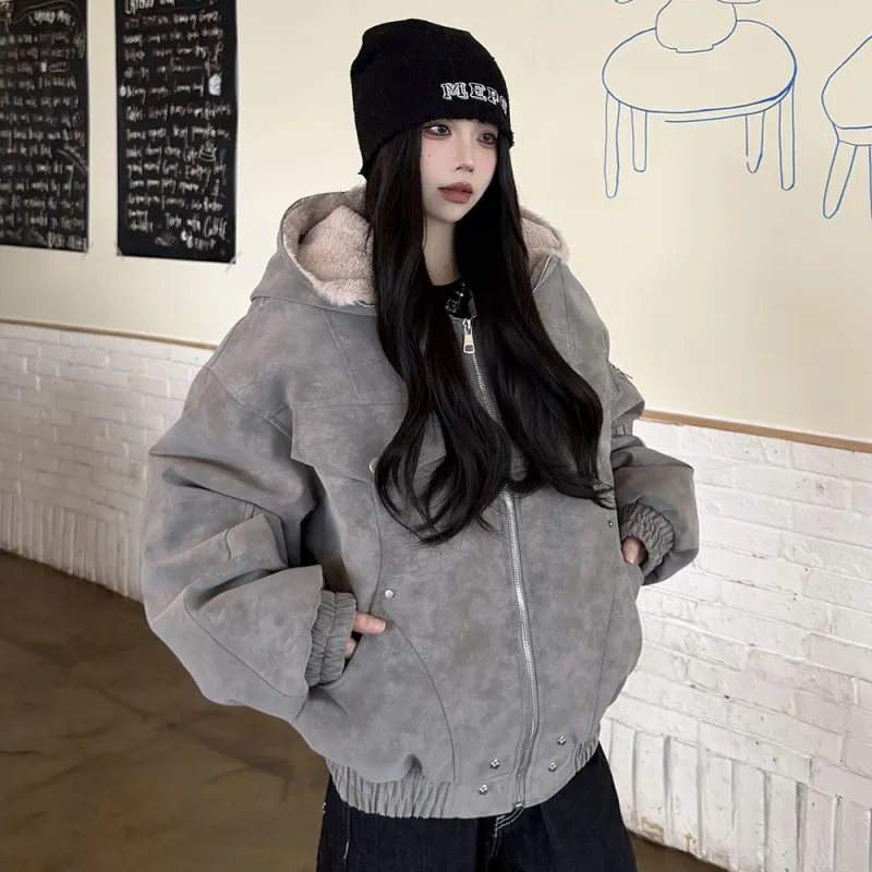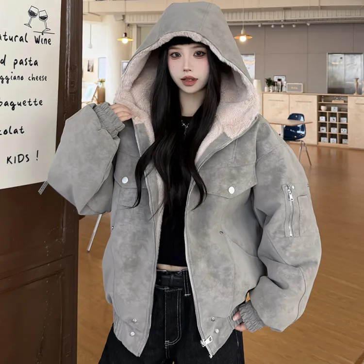 Langqing Темно-серый женский пуховик