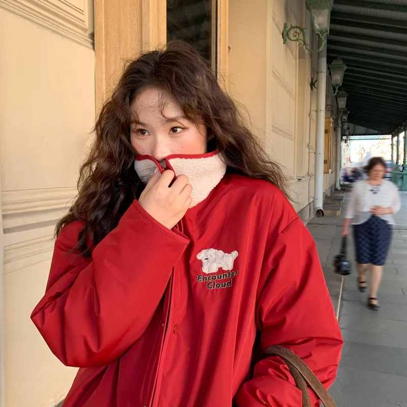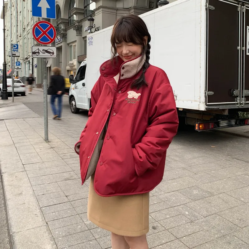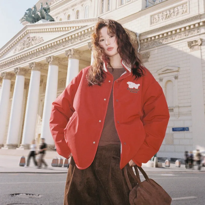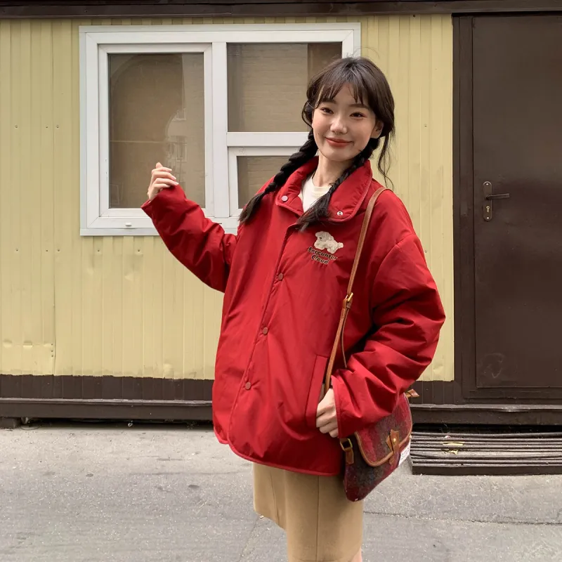 LANGQING Красный С подарками Wangqing Бренд Наклеенный Женские Пуховики