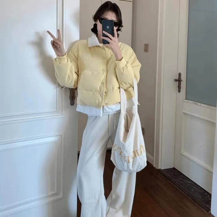Langqing Желтый С подарками Langqing Наклеенный Женские Пуховики