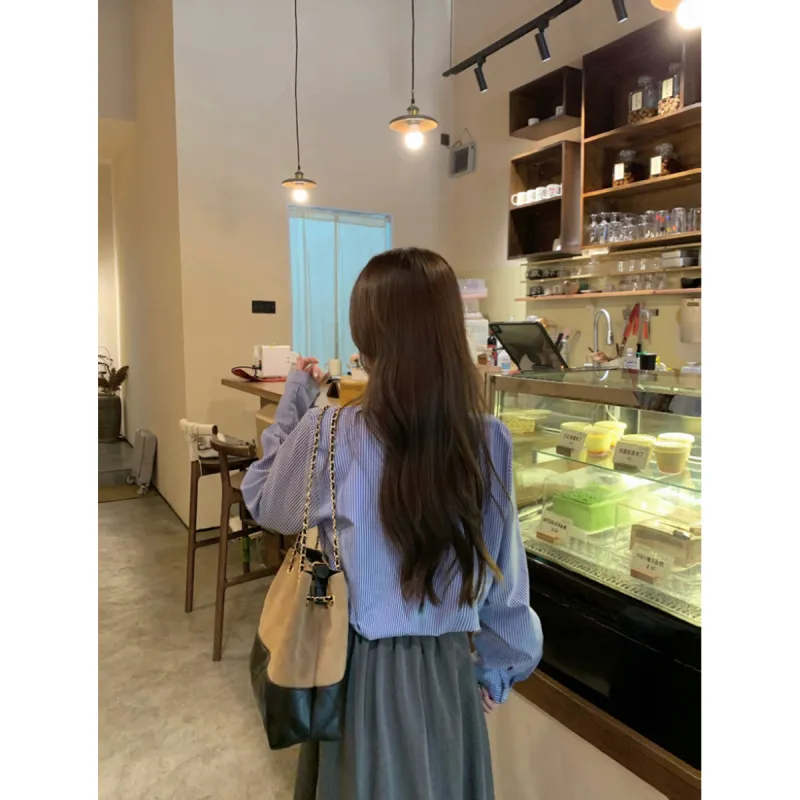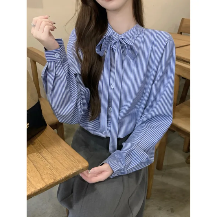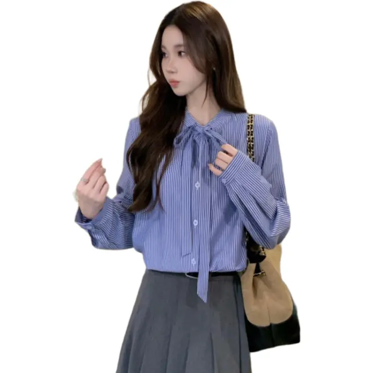 Langqing Синий Бесплатная доставка Бренд Наклеенный Женские Рубашки