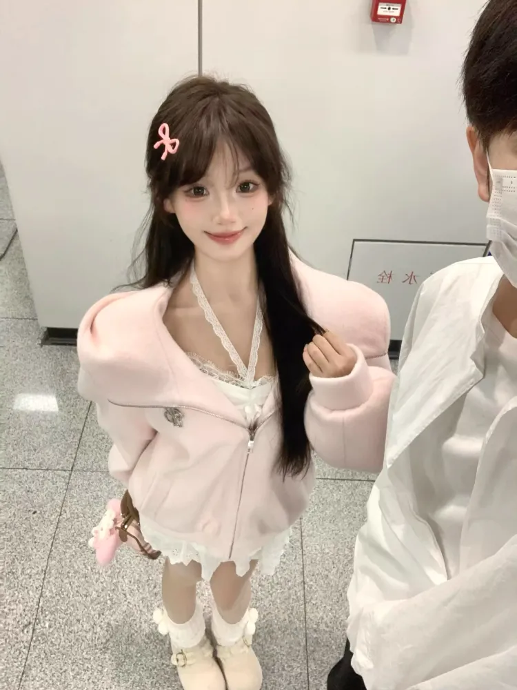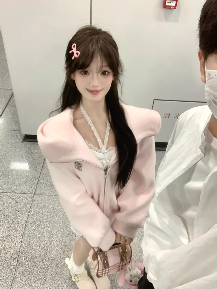 Langqing Розовый С подарками Langqing Наклеенный Женские Свитшоты