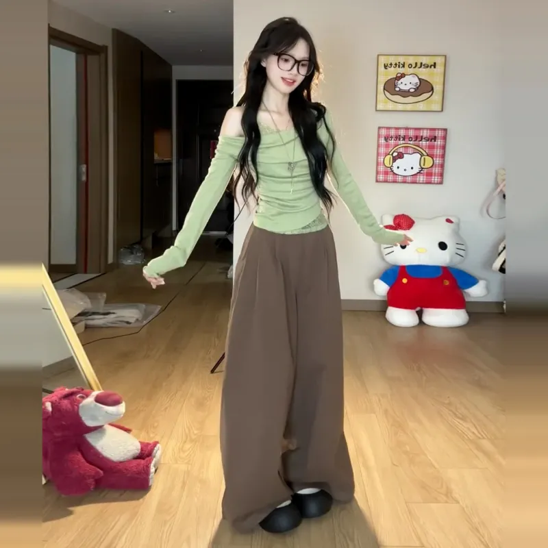 Langqing Зеленый С подарками Langqing Наклеенный Женские T-рубашки