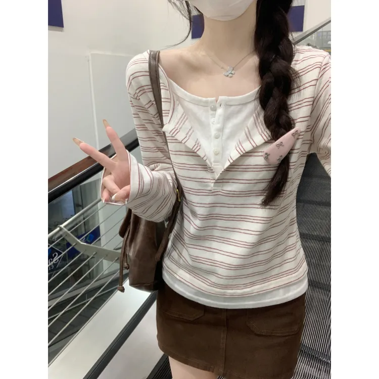 LANGQING Красные полосы Подарочный набор с брендом Wang Qing Наклейка Женская футболка