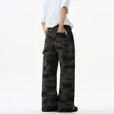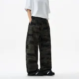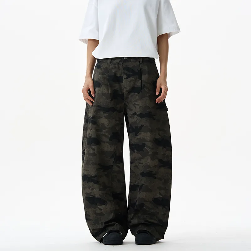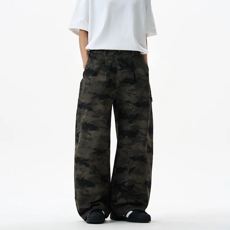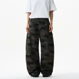 LANGWEIZHE Пэчворк Дизайн Премиум WOODLAND Брюки Универсальный Свободный крой Scimitar Джинсы Унисекс
