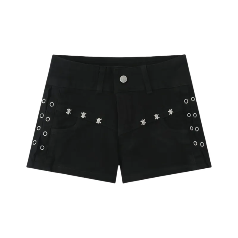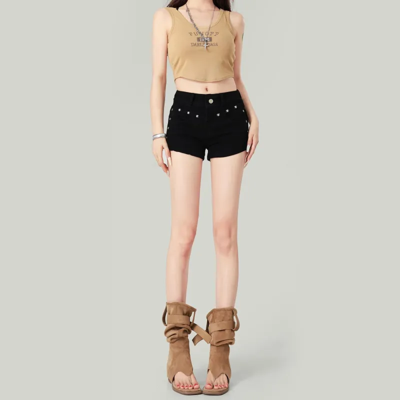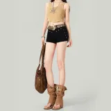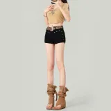 LANMOU JT216 [с эластичным] Черные женские джинсовые шорты