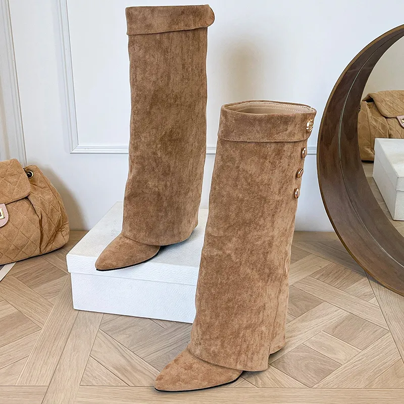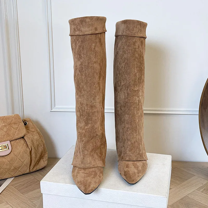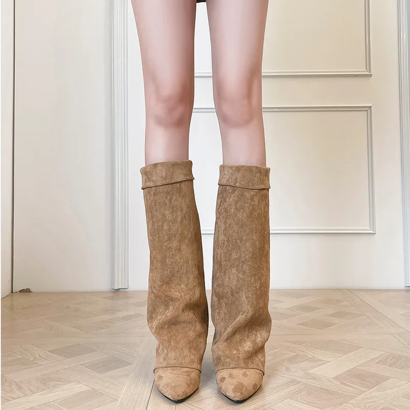 LANMOU Женские сапоги на высоком каблуке цвет хаки