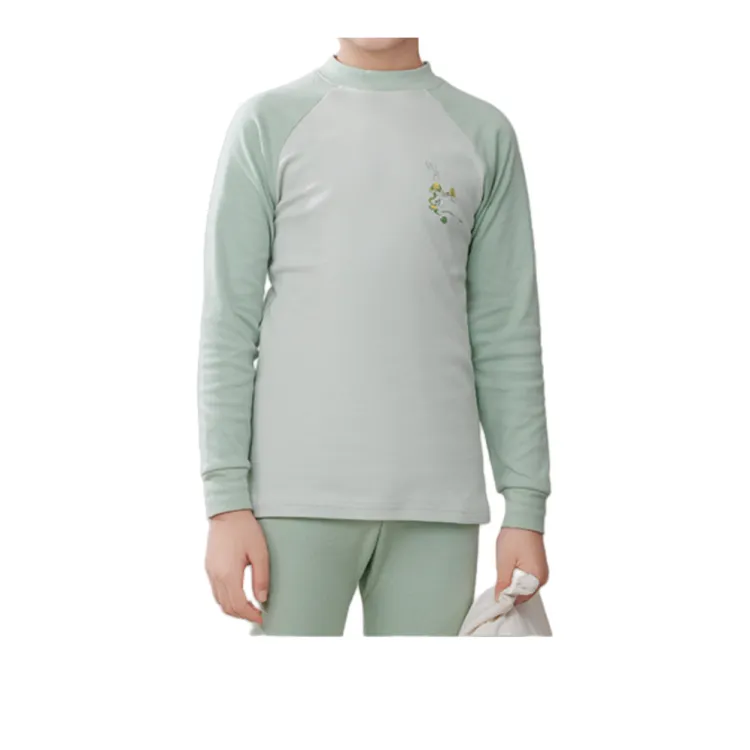 Высокий воротник, светло-зеленый топ + светло-зеленые штаны